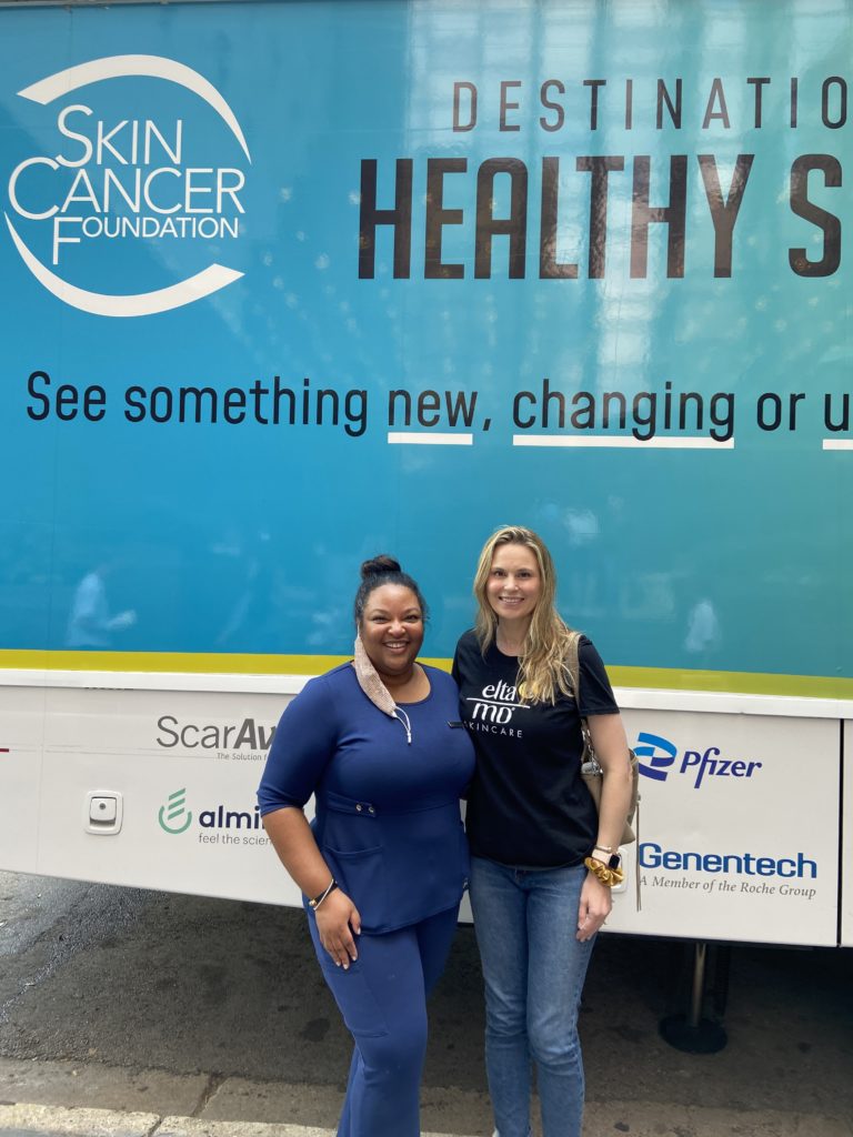 - Jennifer Michalek from EltaMD stopped by our Dallas event and posed for a photo with volunteer Jeaneen Chappell, MD