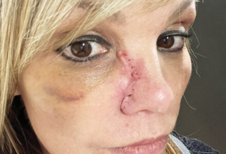 More recently, Dr. Hanke performed three Mohs surgeries for BCCs on her face — one on her forehead and two on her face near her right eye and nose. While the procedures went well, there was a physical and emotional toll. “The ones on my face caused quite a bit of discomfort and swelling for a few days,” she explains. The aftermath of surgery included bruising, swelling and the visible reminder of scars. “After the first few days, the bruising and swelling started to go away. At my one-week appointment, I got my stitches out, and they said it looked good and was healing well.” The scars healed but serve as visible reminders of the consequences of tanning.